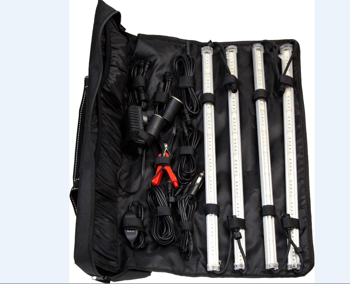 10. IP67 waterproof can resistant to water, dust and moisture ingress. 11. Totally portable 12. 2 years warranty. 13. Inner box: 1200MMLength: 585X125X135 MM 14. Outbox size:1200MMLength: 610X450X320mm, 6pcs / ctns, 12.0kg/ctns ◆ Accessori 1. 4pcs x 12VDC RGB led rigid bar, 2. 3pcs x 2 meter connector wire 4. 1pc x 2 way connector 5. 1pc x 3 way connector 6. 8pcs x Special plastic clip 7. 8pcs x Velcro. 8. 8pcs x stainless steel clip 9.1pc x Receiver 10.1pc x Remote control 11.1pc x big carry bag+color box 12.1pc x 36W Adapter