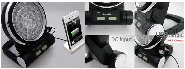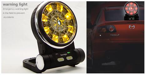 4. Batterypuck: Ni-MH Rechargeable Battery, 4.8V/2000mAh 5. Function: illumination, Single flash, flash, SOS and click voice. 6. USB power output: DC5V/1500mAH, can charge for the mobile phon 7.The run time if use the battery: Work time for the100% light are on:≥4h Work time for the red light flash:≥10h 8. Accessories: 1PC X DC12V Cigarette lighter with 3 meters wire 1PC X DC 12V adapter 4PCS magnet on the base and can be absorbed on the metal materials
