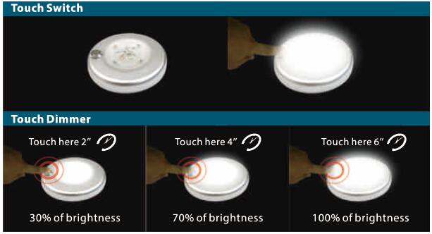 6. With the touch switch on the lightbody and can be dimmer from 10%-100%.