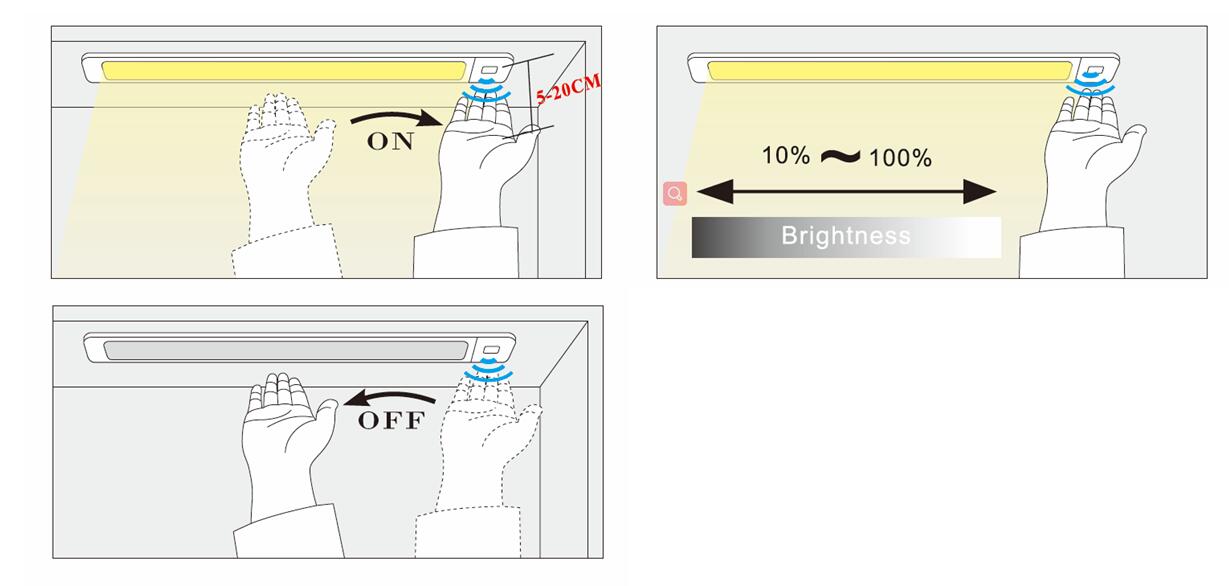 ◆ Product description 1. Use 12VDC low and wide voltage work voltage. 2. LED chip:,SMD3014 LED chip 3. The surface resistance to salt fog treatment, can be used in coastal areas and ship and car. 4. .IP44 waterproof. 5. Direct surface installation, very convenient. 6. With the touch dimmer switch on the Lightbody, can be dimmer from 10% - 100%. 7. Ultra - thin design, very elegant appearance. 8. Light beam angle: 100° degree. 9. CRI> 80 10. CCT: 3000K / 4000K / 6000K 11. Length: L=300mm / L=600mm / L=900mm / L=1200mm 12. Power: 6W / 9W / 12W / 16W 13. Lumen: 400LM / 630LM / 840LM / 1120LM 14. Material:Aluminium + PC 15. Size
